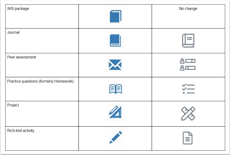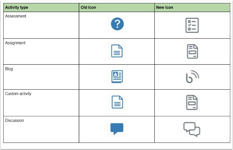 The new activity icons, pictured below next to the old icons they are replacing, will be active this Thursday (7/25).