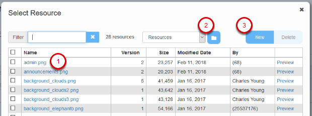 - If you've already uploaded a file that you want to use as an avatar, navigate to it in the Select Resource window and click Select.