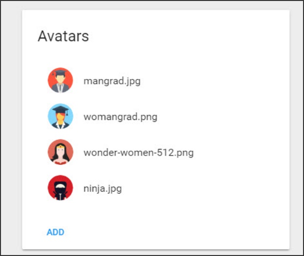 - Click on the filename from the list, if you already have resources added. This will automatically add the file to the list of avatars.