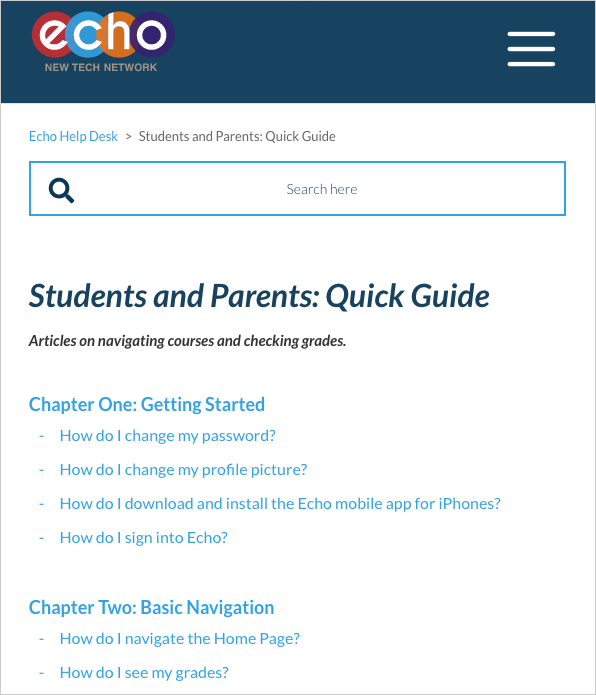 The Echo101 courses for students and parents will be retired this summer. The courses will not be updated to reflect the new activity player. These two courses have been replaced by an easy to access user guide in the Echo Helpdesk. The guide has all the same information as the course, but now you don’t need to manage a course or require individuals to enroll. Just send them the link and they are off and running.