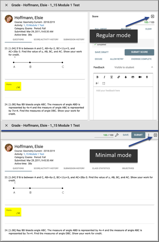 - New collapsible minimal mode that allows for more space to view student submissions.