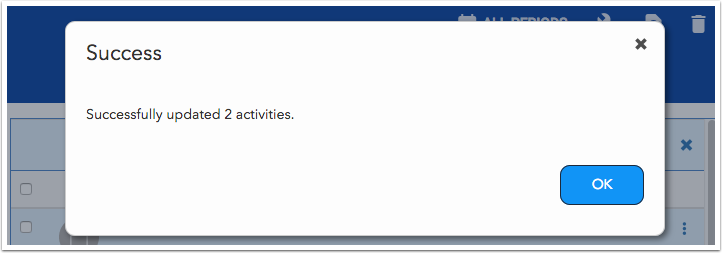 Once updated, you will see a Success dialog box to show the activities were changed.