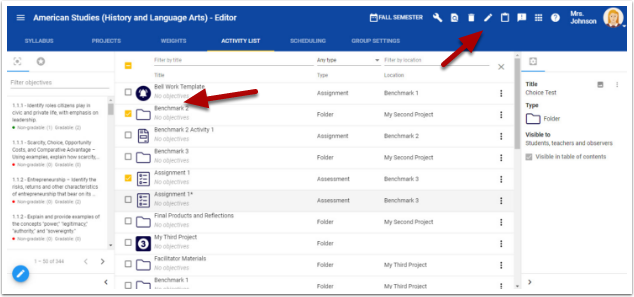 2. (IF USING GRADING PERIODS) If you're looking to bulk edit all activities across grading periods, choose "All Periods" from the Grading Periods dropdown; otherwise you will only see all activities in the currently selected grading period.