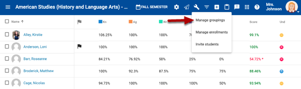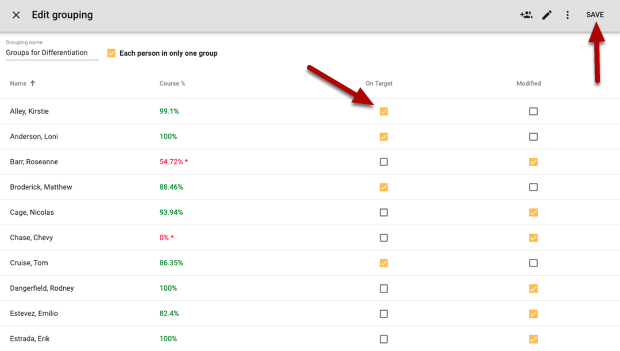 Assign students to groups by checking the box next to their name under the group they need to be in.