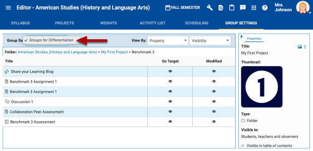 From the group set drop down, make sure to select the groups you created for differentiation.