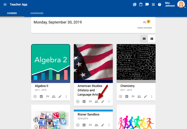 From the course homepage, click on the people icon located on a course that needs differentiated groups.