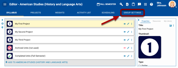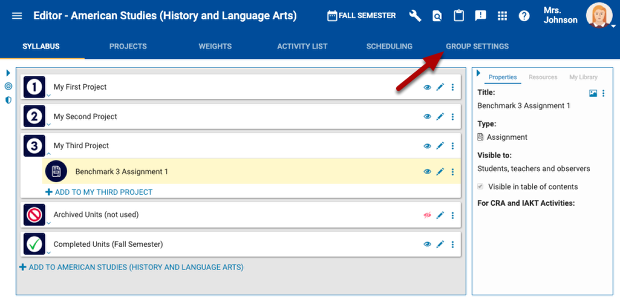 To verify the settings you adjust for each group have taken place, click the group settings tab when in the course editor.