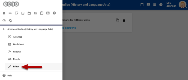 Navigate to the course editor from the main menu